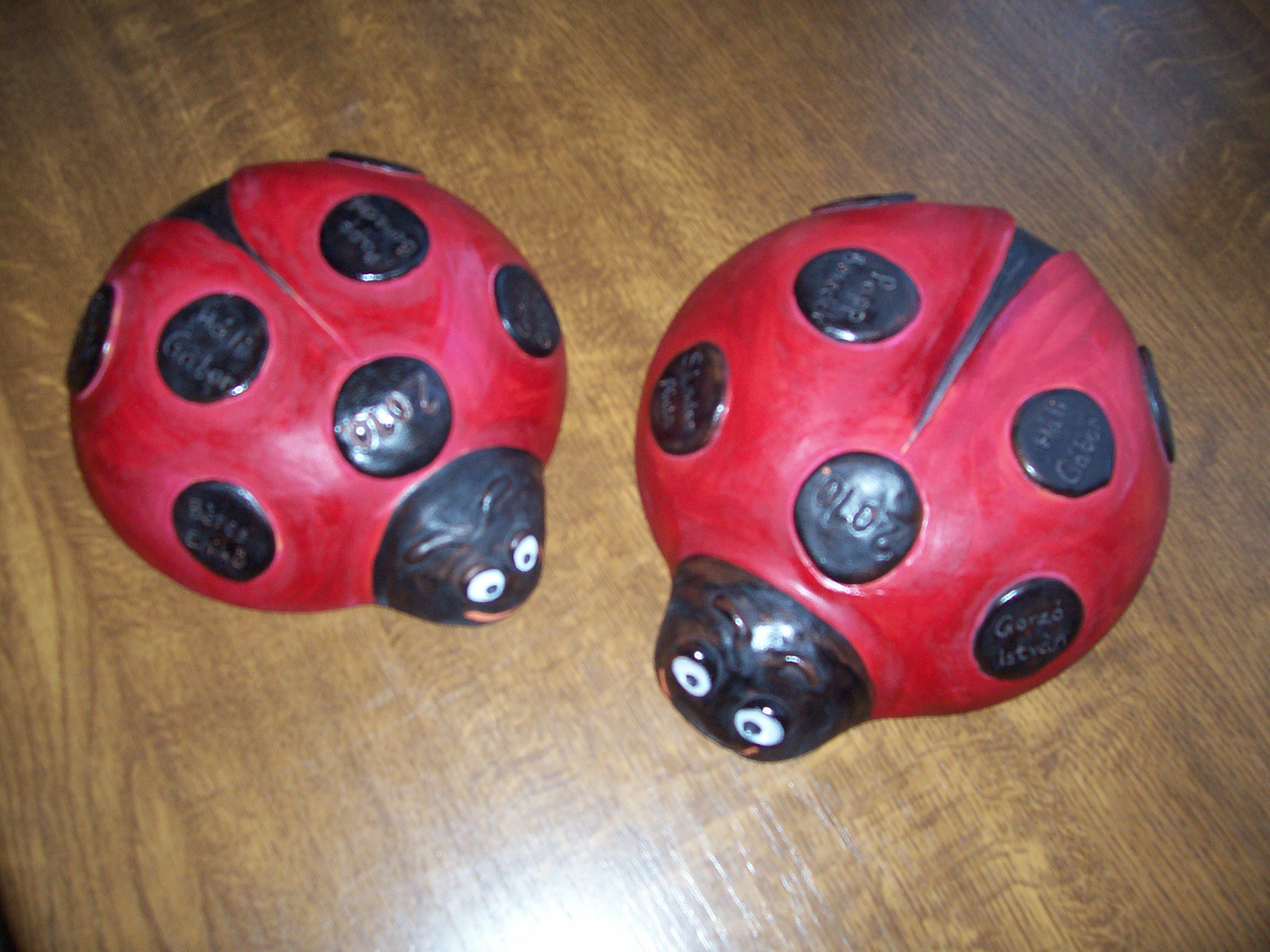 Készültek ovis ballagásra katicabogarak, pöttyeiken az iskolába készülők neveivel; iskolás évzáróra nyitott könyvek, osztálynaplók, festett kaspók; sőt kupák néptáncverseny legjobbjainak. És akkor még ott a sok meg nem valósult, de fantáziadús ötlet, eltéve jövő évre.