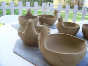 Nem nagy dolgokról van szó, magyar címeres plakettek, és tyúk formájú tálkák, semmi extra, de a kevesebb néha több. Ilyenek most félkészen: