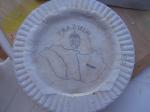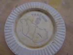 1. Kör alakú plakettről van szó, így elsőként korongolni kell egy sima, lapos tetszés (ill. megrendelés) szerinti átmérőjű agyagkorongot. Általában a vastagság 5-10 mm között van, némi peremmel, hogy keretet adjon a mintának majd. ( na itt lemaradt a kép, ezer bocs…)