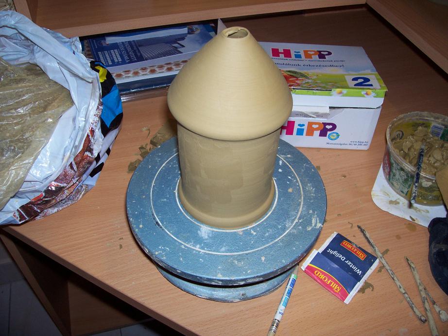 FELHÍVÁS! Kommentelésre késztető feladatot szeretnék adni kedves olvasóimnak: a vártorony lámpásnak van egy tervezett másik funkciója is. Ezt még nem árulom el, mert attól függ, hogy száradás-égetés alatt mennyit fog zsugorodni az építmény, belefér-e az amit bele szeretnék tenni. Viszont jól működő fantáziával megáldott felhasználók akár ki is találhatják. Annyit elárulok, hogy praktikus funkciót adna a toronynak, és olyan dolog tárolásáról van szó, ami szintén a téli “szertartásokhoz” kapcsolódik.