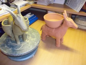 Nos hát először is kérem szépen, a csacsigyártást nem lehet elkapkodni. Ha az ember csacsit formáz, szem előtt kell tartani, hogy az egy igen csökönyös állat, és ha két kétig szárítjuk óvatosan, akkor is képes szétrobbanni a kemencében, csak hogy minket bosszantson. Az alábbi képen a jobboldali szamár tette ezt, de csakazértis összeragasztottam.
