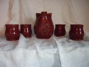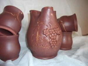 Van egy kis lemaradásom, ígértem még boroskészletről képeket. Tessék parancsolni, egyik effekt mázas barnás színű, ez nagy kedvenc. Az az effekt máz sajátossága, hogy a vastagsága, a cserép felületén való terülése határozza meg a színét, a barnás és vajszín közt: