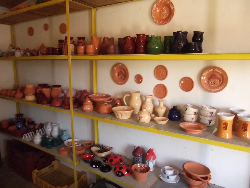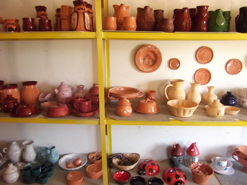 Most jutott eszembe, hogy azt még nem is mutattam meg, hol készülnek a cserepeim. Nem túl nagy a műhelyem, egyik oldalfalán sorakoznak polcokon a kész és a száradó kerámiák,polc alatt agyagtömbök és mázak. A másik oldalon a korong, fülprés, gyúróasztal, munkaasztal, szerszámok, és egy rakodóasztal. Középen a hátsó falnál a kemence. Tulajdonképpen ennyi. Most mégis csak az egyik felét mutatom meg, mert a másik oldalon rendetlenség volt. 😀