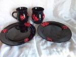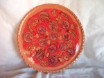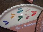 Aki ügyes, kiszúrta a kakukktojás képet. 🙂 Igen, készültek jó nagy kínálótálak is, ezek ott a képen a cseresznyefás mintával kb. 28-30 cm átmérőjűek voltak. És itt jön a poén: (annyira poénos volt, hogy a sírás határán voltam) noha tudom jól, hogy a tányérak, tálak nagymértékű selejteződésével kell számolni, mégis igazságtalan, hogy annyi munkát beleölve is képesek voltak elrepedni. Ráadásul nem is első égetésnél, hanem mázasan, amikor már a nehezén túl vannak. (gondolná az ember…) Sőt, ha már pofon, szóljon nagyot, az összes festett tálamról lejött az összes ráégetett!!!! festék.