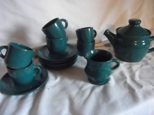 Szép nagyok lettek, kb. másfél literes űrtartalommal, közben pár darab már gazdára is talált, de rendelésre készítek szívesen. Hogy ne csak a nagy méretekről legyen mindig szó, van itt egy klasszikus mokkáskészlet is, már korábban is volt ilyen, de kiegészítettem tejes/tejszínes kiöntővel, meg egy arányosan-aranyosan kicsi kannácskával. A csészéi kb. 1/2-1 dl befogadóképesek, pont egy rövid, erős feketének valók.