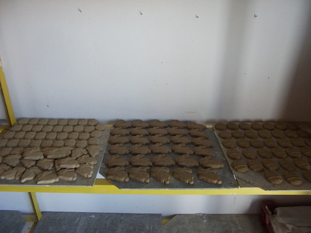 Tapsifüleseket is emlegettem a címben, lefotóztam a nyúlkommandót, ahogy szépen sorban üldögélnek a műhelyben. 🙂 Ezek húsvéti függelékek, még égetés előtt. Óvodások fognak nekik örülni, és szépen ki is festhetik őket az oviban a húsvéti készülődés keretében: