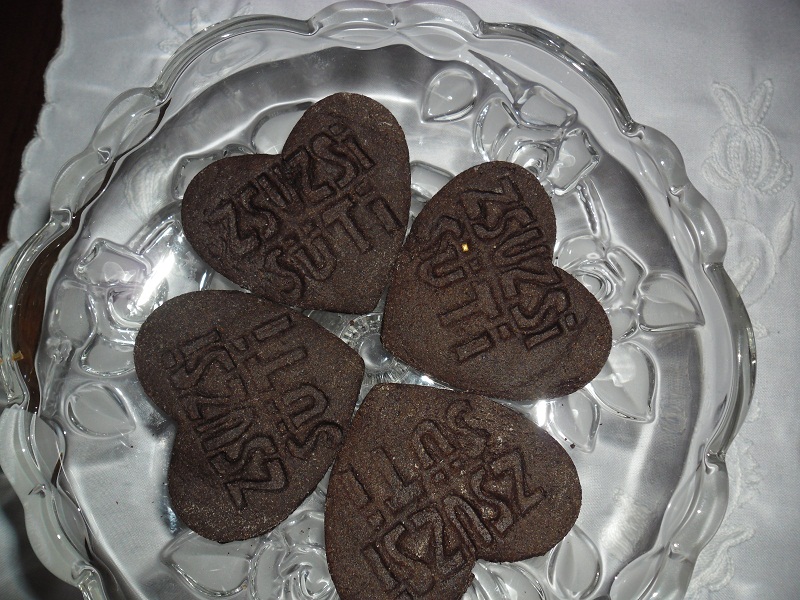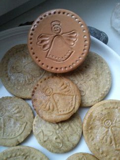 Előfordul, hogy ragad a pecsét a tésztára, erre hallottam olyan megoldást is, hogy olvasztott vajba kell mártani közben, de halványan liszttel megszórt tésztára nyomva is elkerülhető a ragaszkodás. Minél többet van gyurmázva a tészta-főleg ha gyerekekkel pecsételünk, és százhúszszor gyúrjuk vissza a széleket 🙂 -annál inkább előfordulhat a ragadás, mert közben egyre lágyabb lesz az anyag. Ez egyébként úgy is elkerülhető, ha a tésztát kicsit vastagabbra nyújtjuk, mint amilyenre a kész kekszet szeretnénk, mert akkor nem kell akkora erővel rányomni a pecsétet, nem ragad a tészta a vésetbe, a végeredmény pedig a nyomás miatt úgyis vékonyabb lesz.