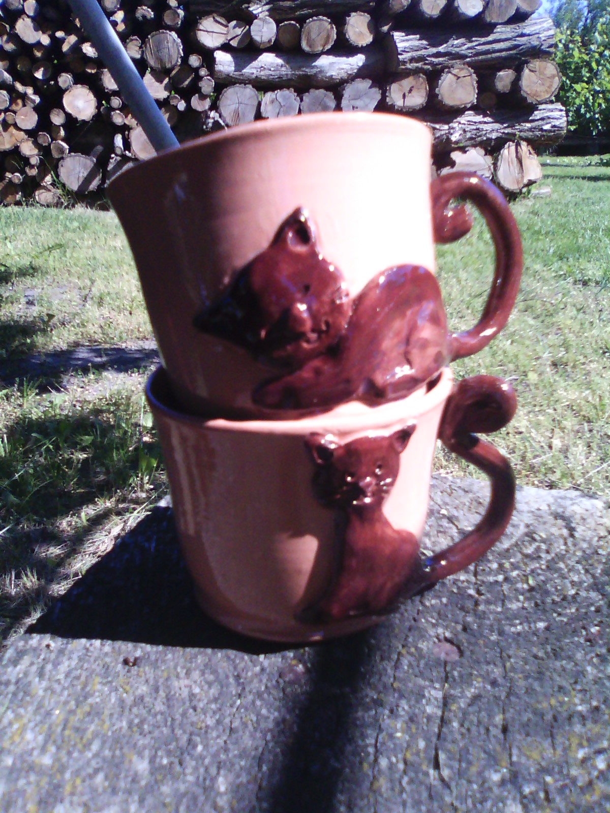 A kerámiapulik pedig értelemszerűen kerámiamacskákat szeretnek kergetni, mondjuk ilyeneket, amiket egy zavart pillanatomban csészék oldalára ragasztottam: