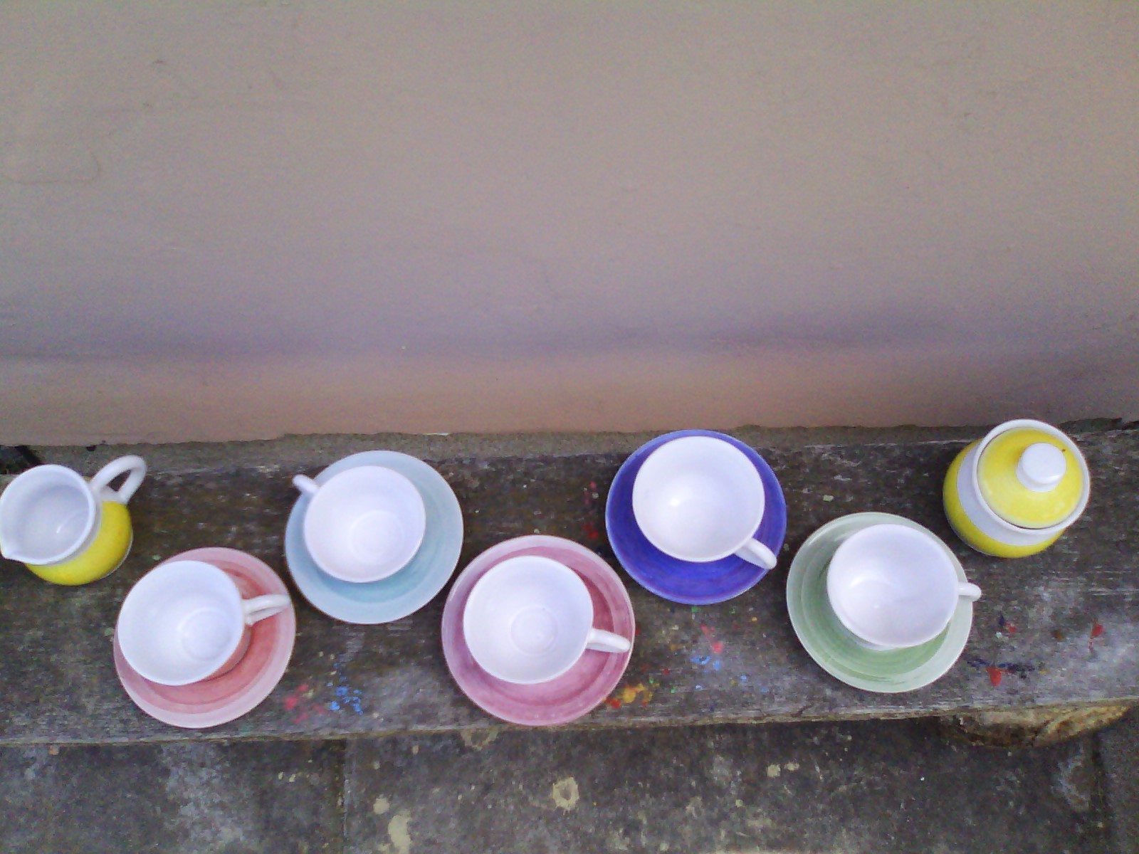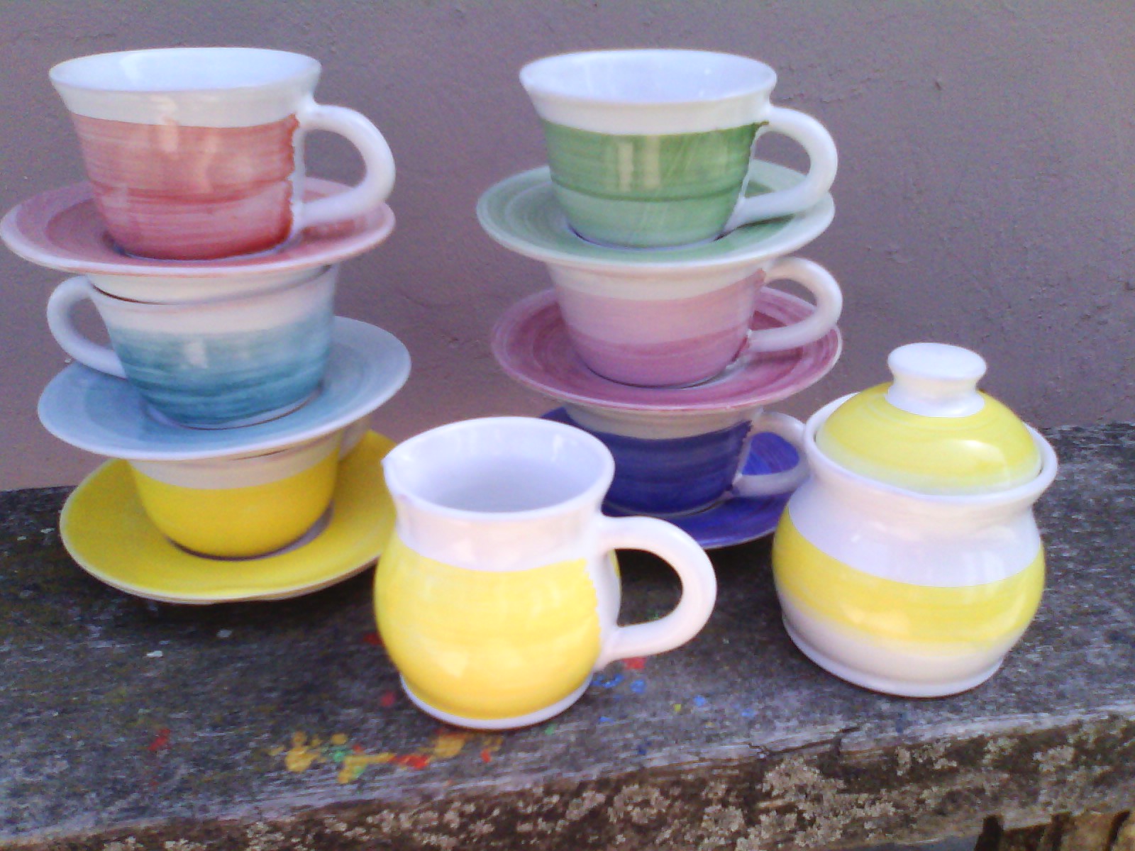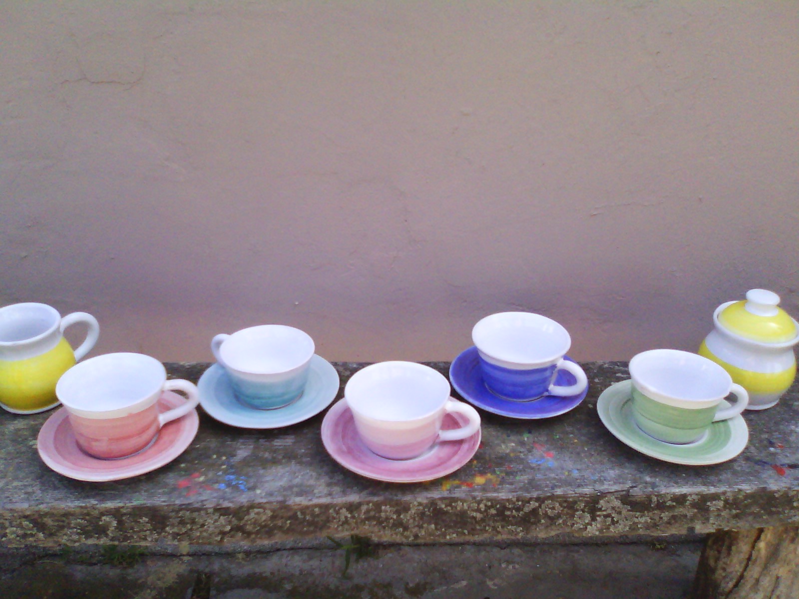 Aztán jött egy megrendelés, és leporoltam a mázas vödröket, és egy élmény volt. 🙂 Na nem a porolás, hanem az élénk árnyalatok napvilágra kerülése. A hab a tortán pedig az, hogy az adott színek nem egy-egy külön készleten szerepeltek, hanem az összes szín közösen alkotott olyan szettet, aminek minden darabja más-más. Az eredmény szerintem kivételesen vidám és hangulatos, van benne valami mosolygós érzés.