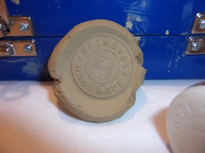 Sokszor kaptam ejnye-bejnye jellegű megrovásokat, hogy miért nincs a kerámiák alján, vagy valahol egy kézjegy, hogy tudják, ki készítette. Régebben gipszből készítettem icipici “szignónyomó” pecsétkét a monogramommal, amit a friss edény aljába lehetett nyomni, csak hát az idő vasfoga ugyebár a gipsznek sem kedvez.