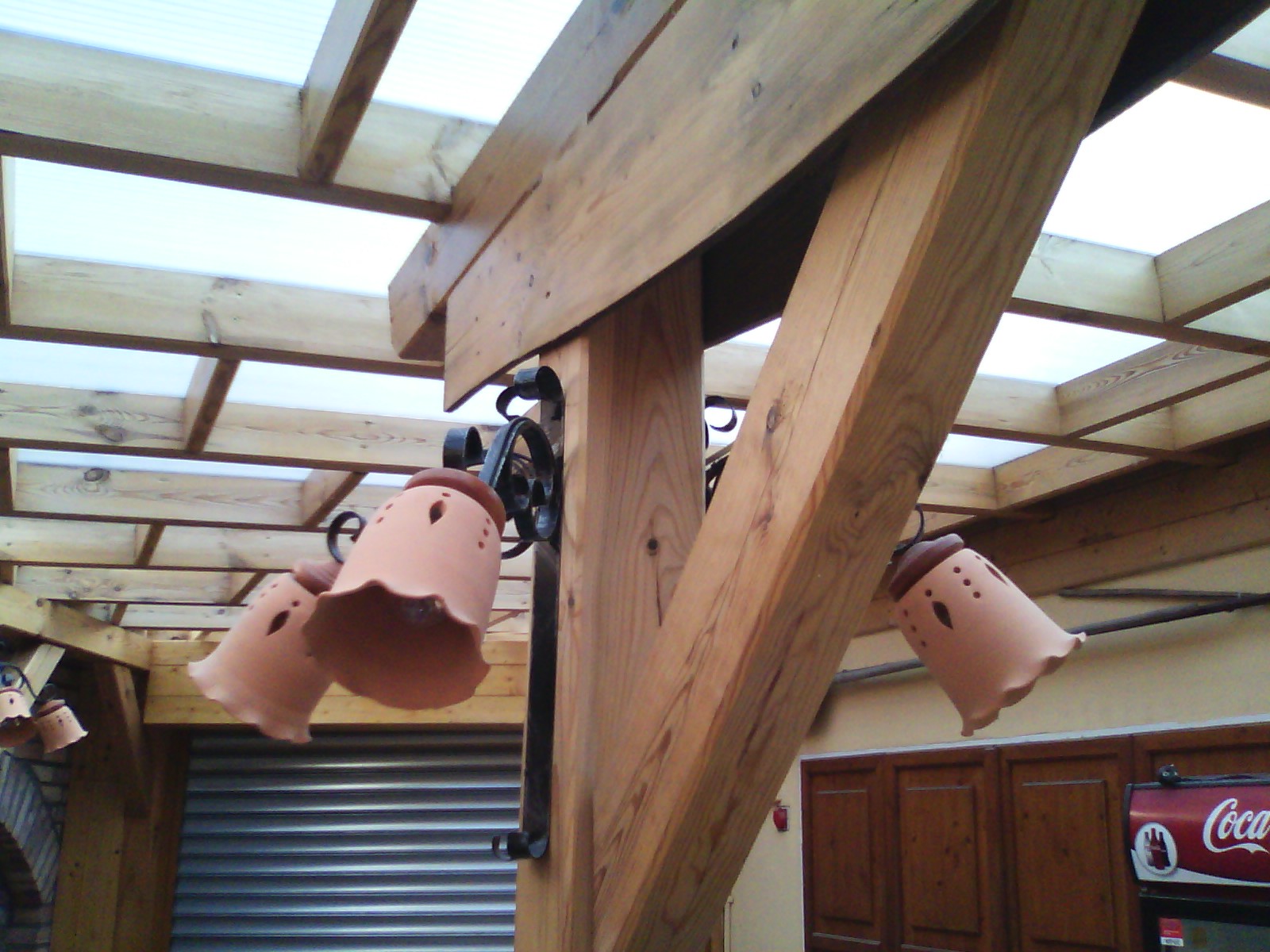 Az alábbi lámpatesteket samottos fagyálló agyagból korongoltam, most a balatonmáriafürdői István-grill és fagylaltkertet díszíti. Persze nem lenne az egész ilyen szép a profi szerelés és kovácsoltvas foglalat nélkül. Egy ilyen lámpabúra 2000.-Ft/db áron rendelhető.(szerelék és foglalat nélkül) Igény szerint egyedi elképzelés alapján is készítek szívesen. Mivel nem sablonnal dolgozom, ezért a forma, méret, és díszítmény nem kötött, saját tervek alapján is lehetséges rendelni.