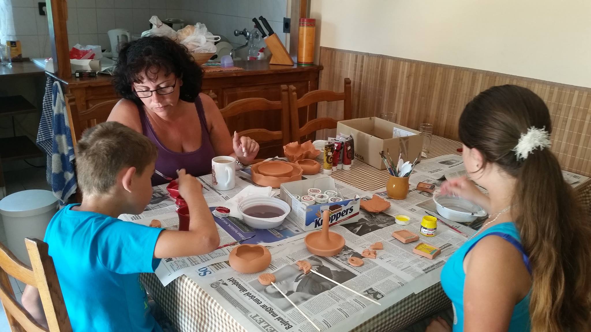 Na de mi van akkor, ha valaki szeretne agyagozni, festegetni, korongolni, vagy valami különleges saját készítésű ajándékot kreálni, de épp nincs a környéken rendezvény, vagy foglalkozás? Nagyon egyszerű: felhív engem, vagy egeret ragad és emailt ír nekem, időpontot egyeztetünk, és már jöhet is a műhelybe kreatívkodni. Persze anyagi vonzata van a dolognak, az árakat meg lehet találni a korábban említett bejegyzéseimben, ez egy jó iránymutató, de meg tudunk egyezni minden esetben. Volt rá példa, hogy valakinek csak kisebb összegű zsebpénz állt rendelkezésére, ilyenkor ha talál egy barátot/barátnőt akit szintén érdekel, akkor osztozhatnak az óradíjon, vagy pedig megbeszéljük, hogy mi jön ki az adott összegből, és akkor természetesen nem padlóvázát, hanem mondjuk ékszeres dobozkát készítünk ajándékba.
