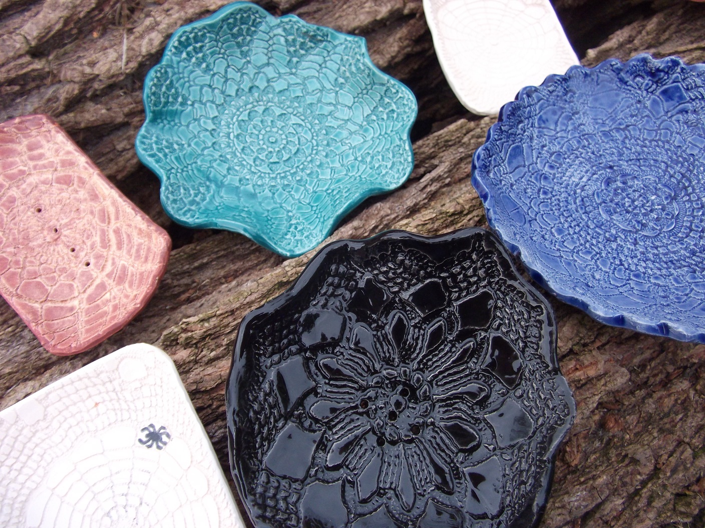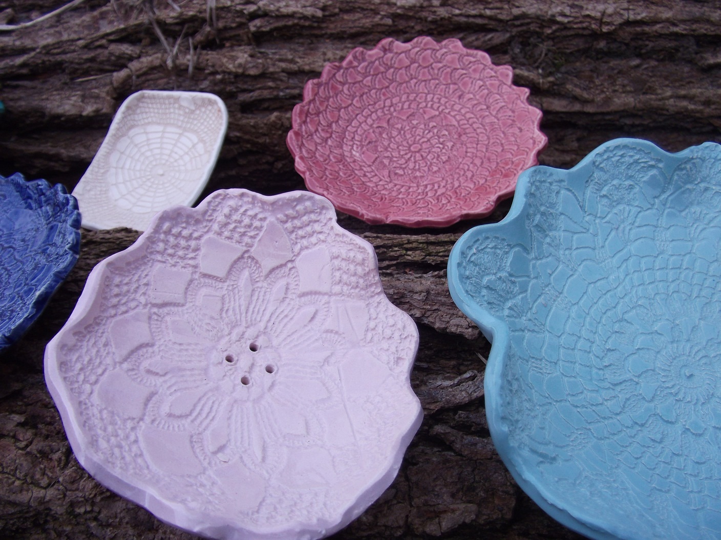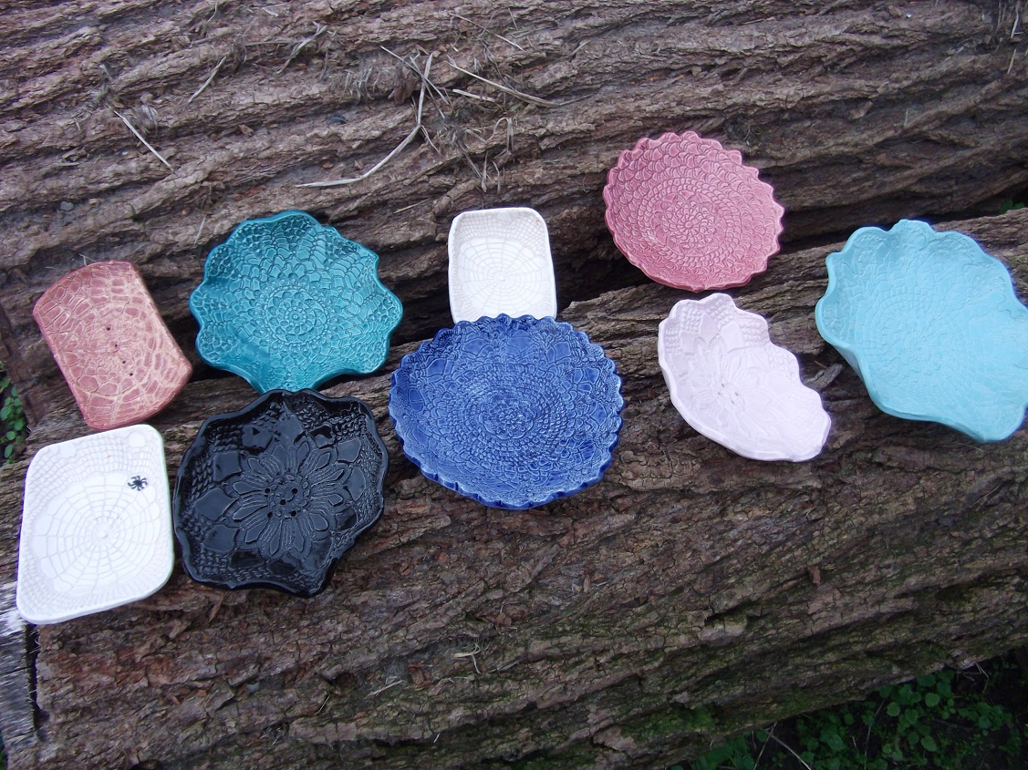 Úgyhogy csodálattal adózóm a horgolás művelői előtt, és lelkesen agyagba örökítem ezeket a finom kis pókhálószerű csodákat. Némelyik szappantartó lesz, másik ékszertartó, harmadik mogyoróstálka. És ha megkérdezik, jé, mi ez ,te csináltad?….akkor az igazság az, hogy nem, hanem a nagymamáim és a dédmamám….Én csak hozzáadok valamit abból, amit én tudok, és amit lehet, hogy tőlük örököltem.
