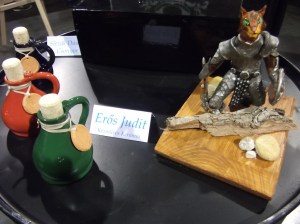 Korábban már beszámoltam szobrászkodási és fantasy témájú alkotási hajlamaimról, meg is osztottam ilyen irányú pályázati részvételeim is. Sárkányos tálam márciusban járt a Budapest Kerámia kiállításán. (sajnos erről influenzaszerű okokból kifolyólag nincs képem) Most viszont hoztam képeket az áprilisi budapesti PlayIT rendezvényéről, ahol a GameArt standon került kiállításra sok nagyszerű, játékokkal kapcsolatos alkotás, köztük az én macskaharcos szobrocskám, és a varázsitalos fiola-szettem.