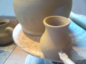 Az általában egyértelmű, hogy korongozni forgástesteket lehet. Még az is átlátható laikus számára is, hogy utólag a forgástestre lehet applikálni mindenfélét, például fület, és kész is a kiöntő, bögre, kancsó, korsó, satöbbi. Viszont a teáskanna már egy kicsivel nagyobb varázslat, de most megpróbálom kicsit fellebbenteni a fátylat, hogyan is készül valójában.