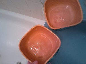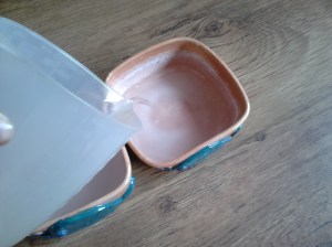 És ezzel kész is. A mennyiséget illetően nincs meghatározott arány, én úgy szemre szoktam, de ha a procedúra végén marad egy kis makacsabb lerakódás, akkor megismételhetjük a műveletet, és legközelebb már tudjuk, hogy picit többet kellett volna… 😀 És lám, az edényem a rossz fotó ellenére is ragyog, nem vesztett a máz újkori csillogásából, szóval ezzel a kis szösszenettel szeretnék mindenkit megnyugtatni, hogy bátran használhatja kerámia edényeit.