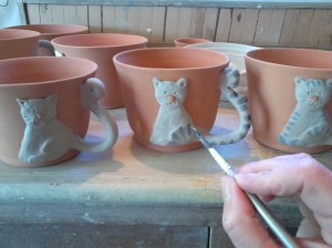 -alapanyag felhasználásból eredő sajátosságok (ez nem porcelán, hanem fazekasagyag, nem tömör, hanem pórusos szerkezetű cserép, főleg vörösre, ritkábban fehérre égőt használok)