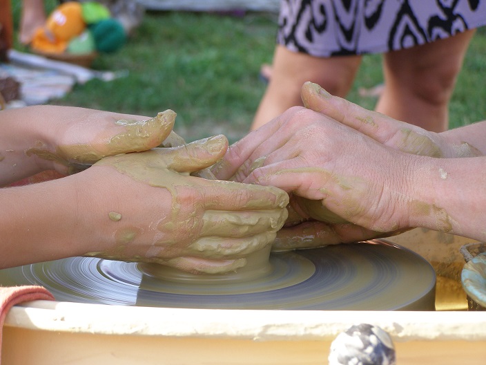 -a foglalkozás keretében lehet korongolni és/vagy kézi formázással dolgozni-a készített dolgokat száradás után tudom kiégetni, tehát egy későbbi időpontban kell értük jönni, de el is postázom szívesen-lehetőség van festés-mázazásra is, az egy külön alkalmat jelent égetés után( van olyan gyerkőc, aki nem szívesen hagyja itt a remekművet, főleg a kicsik, persze nyersen is haza lehet vinni óvatosan 🙂 )