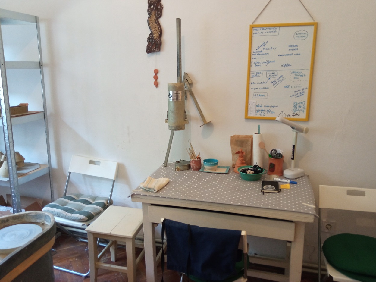 Így most ismét Fenyvesen vagyok, egy birtokon belül van a nyaralóház és a műhely. A műhelyrész el van választva a szálláshelytől, és amikor vendégek vannak, természetesen nincs műhelymunka, a vendégek egyedül lehetnek és zavartalanul pihenhetnek. És itt jön a csavar! Lehetőség van kézműveskedésre, korongozós foglalkozásra nekik is, tehát ha népesebb család/baráti társaság jön a nyaralóba, és szeretnének némi rekreációs alkotótevékenységet, akkor a két épületrészt össze tudjuk nyitni, és már indulhat is a kreatív workshop.
